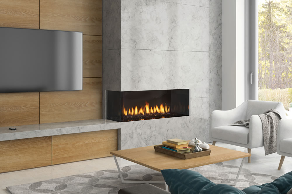 The City Series gives you the creative freedom to apply any finishing materials to the edge of a clean line gas fireplace.